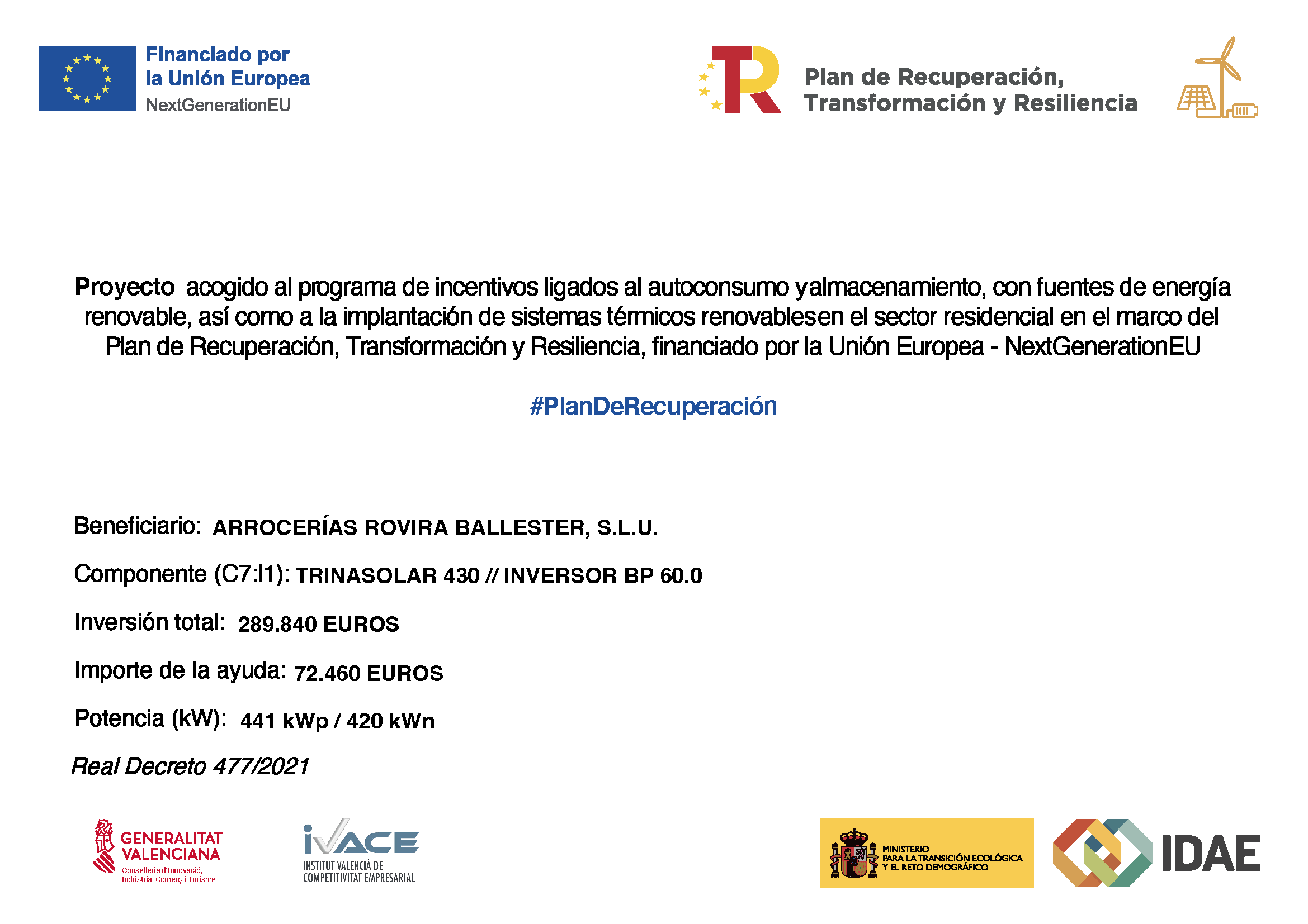 Planta Fotovoltáica Home / Planta Fotovoltáica Ponemos en marcha en nuestras instalaciones una Planta Solar Fotovoltáica que generan 441 kw/p para autoconsumo.